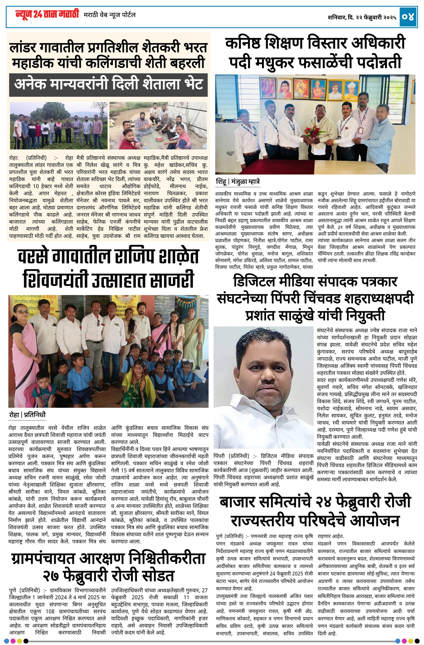न्यूज २४ तास मराठी, शनिवार, दि. २२ फेब्रुवारी २०२५
